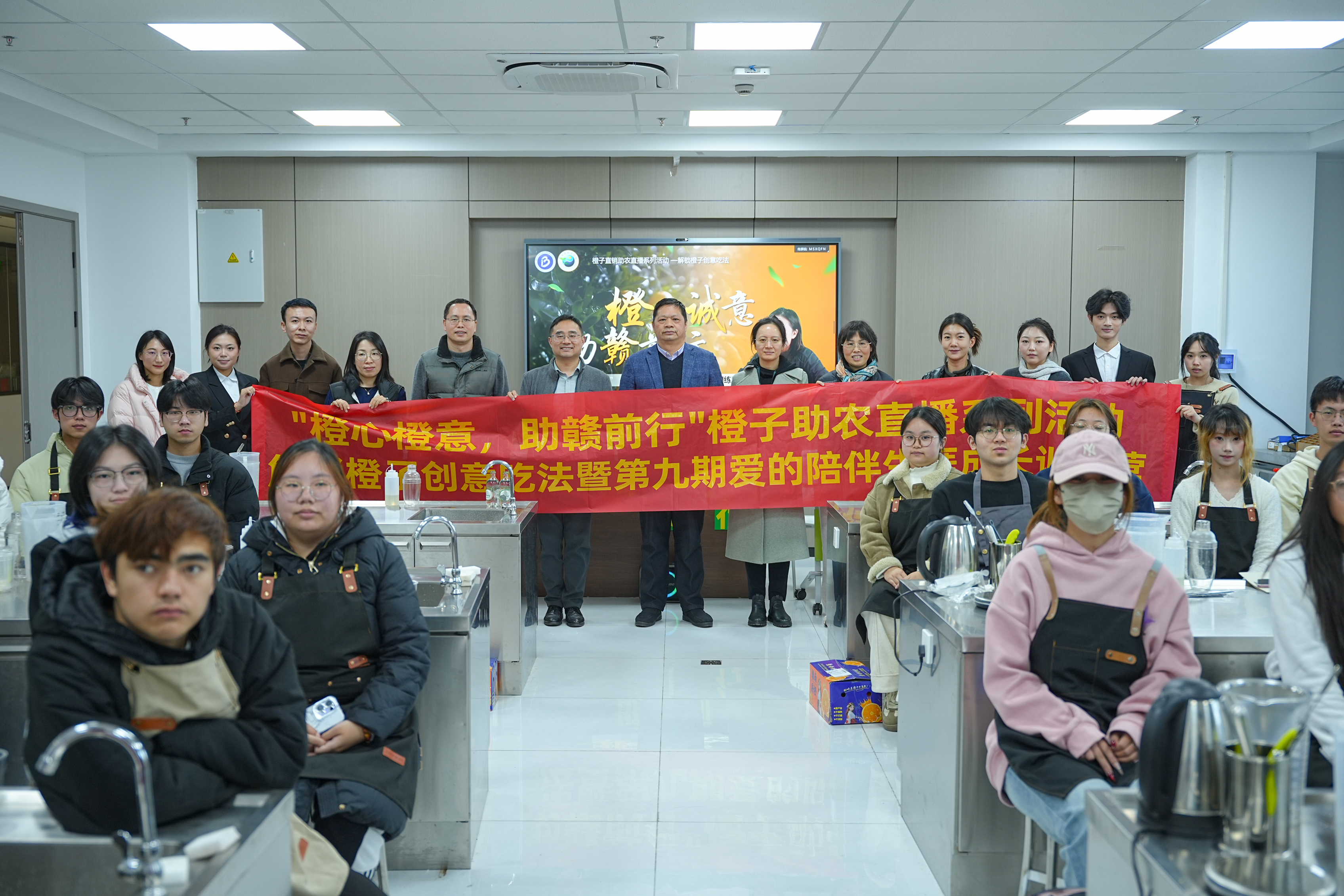 本次活动以“橙子”为载体,创新融合思政、心理与资助育人元素。活动中,合作经济学院唐贵珍老师开展新式茶饮实操教学,指导学生解锁橙子创意吃法、制作橙香茶饮,在创意制作中纾解压力、涵养爱校情怀;奉茶敬师环节以礼传情,在躬身献礼中拉近师生距离、传递感恩之心;“橙子有礼”环节以橙为媒,既传递助赣助农共富初心,又将精准资助温暖落到实处,助力家庭经济困难学子坚定信心、向阳生长。