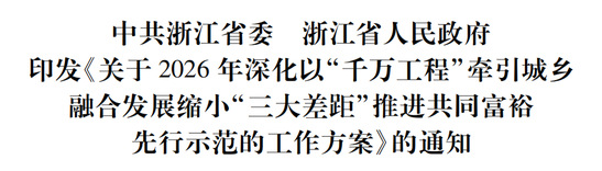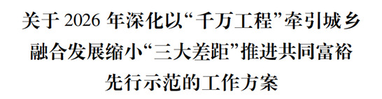 为深化以“千万工程”牵引城乡融合发展缩小“三大差距”推进共同富裕先行示范,切实做好2026年度工作,制定本工作方案。